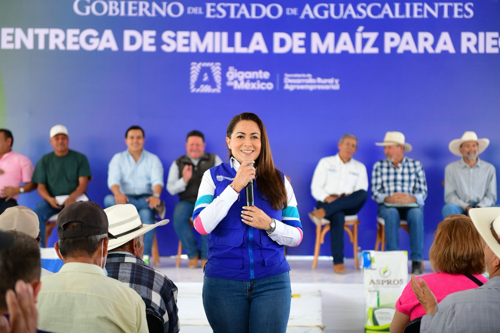 Acompañaron a la gobernadora Antonio Martín del Campo, senador de la República por Aguascalientes; Rodrigo Cervantes Medina, Heriberto Gallegos Serna, Amisadai Manuel Castorena Romo y Jedsabel Sánchez Montes, diputados locales; José Manuel González Mota, presidente municipal de Asientos; José Uriel Romo Castañeda, presidente del Comité Estatal Sistema Producto Maíz; Héctor Castorena Esparza, director general del Sistema DIF Estatal; Manuel Ortiz, beneficiario del Programa “Seguro Agrícola Catastrófico”, y Brenda Jaqueline, beneficiaria del Programa de Atención Alimentaria.